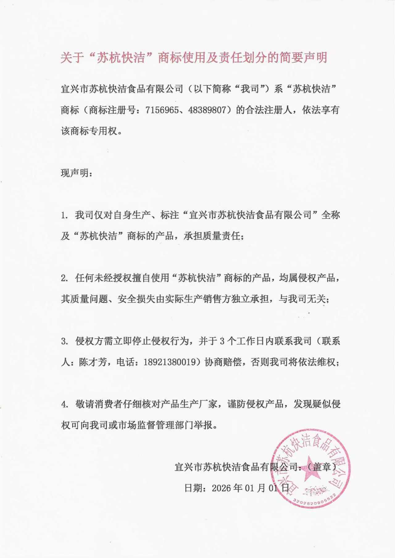 品牌形象支持:合同期间,加盟店享有苏杭快洁预制菜的品牌使用权,有权使用合同约定范围内的苏杭快洁预制菜品牌,商标。